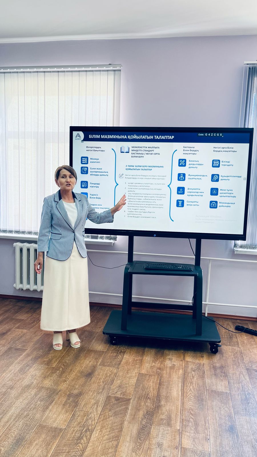 В ходе мероприятия учителя-мастеры: А. Рустемова, А. Бекманова предоставили исчерпывающую информацию о правилах стандарта обязательного начального и основного среднего образования Республики Казахстан и способах интеграции ценностей в содержание предметов и краткосрочные поурочные планы в рамках программы «Интегрированное образование».